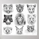 Poster Retratos De Animais Desenhados À Mão