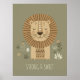 Complete sua decoração de safari com esta encantadora e confortável impressão de retrato de leão. A obra de arte apresenta um leão doce e estilizado, rodeado por uma magnífica juba listrada. Contra um fundo verde-oliva suave e acentuado por elementos botânicos sutis, o design é moderno e delicado. A legenda positiva, "FORTE & DOCE", torna esta uma peça inspiradora de decoração para encorajar a coragem e a bondade em uma criança. Este pôster é uma excelente escolha para um quarto ou sala de brincar com tema neutro ou de selva. Parte da nossa coleção coordenada 'Decoração de Safari para Crianças'. Nota: design adaptado a partir de conteúdo gerador.