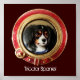 Design elegante com efeitos de pergaminho marrom antigo de miniatura de esmalte do Cavalier King Charles Tricolor Spaniel , do quadro de Sir Edwin Landseer por William Essex (1784-1869)