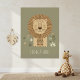 Complete sua decoração de safari com esta encantadora e confortável impressão de retrato de leão. A obra de arte apresenta um leão doce e estilizado, rodeado por uma magnífica juba listrada. Contra um fundo verde-oliva suave e acentuado por elementos botânicos sutis, o design é moderno e delicado. A legenda positiva, "Forte e Doce", torna esta uma peça inspiradora de decoração para encorajar a bravura e a bondade em uma criança. Este pôster é uma excelente escolha para um quarto ou sala de brincar com tema neutro ou de selva. Parte da nossa coleção coordenada 'Decoração de Safari para Crianças'. Nota: design adaptado a partir de conteúdo gerador.