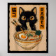 Poster Retro Anime Kawaii Black Cat Eating Ramen Noodles