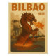 Póster Retro Bilbao Travel Poster - Spanish Kaiju Monster