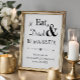Vai ser um belo casamento, por isso veste a decoração do teu casamento com esta poster de um retro engraçado Comer, Beber e Casar! Material de papelaria e material de festa disponíveis.