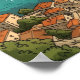 Step into the golden age of travel with this exquisite vintage-style illustration of Dubrovnik, Croatia. This vintage style artwork on a poster captures a sweeping aerial view of the iconic Old Town, featuring the terracotta rooftops, the historic Old Port, and the imposing Fort Lovrijenac standing guard over the turquoise Adriatic Sea. Make this unique travel souvenir your own and buy now.