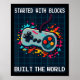Poster Retro Gamer Design For Men Started With Blocks Bui