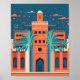 Poster Retro Marrakech Marrocos Landscape Flat Vetor Art
