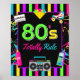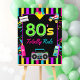 Adicione um toque divertido à sua festa de aniversário temática neon 80s com um retrô, neon 80s com uma placa de festa espetacular com fita cassete, pás de rolo, garrafa de spray de cabelo, telefone velho e caixa de bum!!