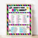 Volte aos anos 80 com este neon colorido O que é o sinal de jogo dos nomes dos 80 com etiquetas incluídas. Este jogo da década de 1980 irá adicionar uma atividade divertida ou quebra-gelo à sua festa de aniversário ou evento retrorreflector da década de 1980 — para crianças e adultos!
