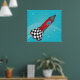 transform your walls into a portal to the stars with this retro red rocket poster featuring a classic checkered tail and vibrant outer space illustration. this high quality print showcases a sleek vintage design set against a stunning celestial background making it the perfect focal point for a kids nursery or a science fiction themed office. the bold blast off graphic and detailed starry sky artwork capture the excitement of a galactic voyage in every inch of the frame. whether you are decorating a bedroom for a future astronaut or adding to a collection of vintage science fiction art this striking poster brings the beauty of the cosmos into your home.