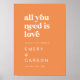 Este retrógrado de boas-vindas laranja de verão, modelo, é perfeito para um casamento colorido. O design único e moderno apresenta uma vibrante e ousada tipografia laranja e branca dos citros, com vibrações divertidas e divertidas. Personalize o poster com os nomes do casal e a data do casamento.