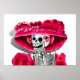 Poster Rindo de Mulher Esqueletrista em Cabana Vermelha