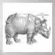 O Rinoceronte de Albrecht Dürer é uma madeira que ele baseia em uma descrição escrita e um breve esboço de um artista desconhecido de um rinoceronte indiano que havia chegado a Lisboa no início desse ano. Dürer nunca viu o verdadeiro rinoceronte, que foi o primeiro exemplo vivo visto na Europa desde os tempos romanos. No final de 1515, o Rei de Portugal, Manuel I, enviou o animal como presente para o Papa Leão X, mas morreu num naufrágio ao largo da costa italiana no início de 1516. Um rinoceronte vivo não foi visto novamente na Europa até que um segundo espécime da Índia chegou ao tribunal de Philip II na Espanha de cerca de 1579[2][3]. O corte de madeira de Dürer não é uma representação exata de um rinoceronte. Ele retrata um animal com placas de duro que cobrir seu corpo como lençóis de blindagem, com um gorget na garganta, uma placa de peito sólida, e rebites ao longo das costuras; e uma pequena buzina torcida nas costas, pernas escaldantes e traseiras semelhantes a serras.