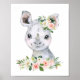 Adicione o toque final ao quarto do seu bebê ou da sua criança com essas belas impressões de arte! O design apresenta rinoceronte, flores cor-de-rosa em aquarela e folhagens.