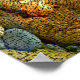Um design de produção digital de seixos, rochas e folhas de outono na borda dos rios coberta por pequenos blocos com efeito digital.