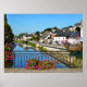 Rio Oust visto da ponte, parte do canal Nantes em Brest, e flores em Josselin, município do Morbihan na Bretanha, no noroeste de França
