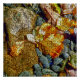 Um design de produção digital de seixos, rochas e folhas de outono na borda dos rios coberta por pequenos blocos com efeito digital.