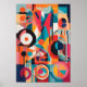 Ritmos em movimento: a geometria da Abstrato com energia divertida e cor vibrante. Motivos circulares, ângulos agudos e formas em camadas unem-se num arranjo deslumbrante de coral, lacre, marinho e tons laranja. Essa composição dinâmica evoca o ritmo da música e o pulso da vida urbana, fazer-a uma peça central perfeita para espaços modernos e criativos. Negrito, alegre e indesculpavelmente abstrato, esta peça convida o espectador a explorar o movimento e a forma.