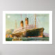 Revestimento marítimo de vinagre ilustração do Laurentic RMS da White Star Line de 1927. Construído para o Liverpool até ao Quebec e ao comércio transatlântico canadiano de Montreal até 1935. Foi utilizada para tropas no final da década de 1930 e foi equipada como um cruzador armado pelos britânicos, mas foi perdida para um torpedo alemão ao largo da irlanda em novembro de 1940.