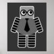 Esta ilustração de robôs giros e inteligentes geek apresenta um robô divertido com cinzas e pernas e braços estriados, óculos pretos espinhosos e uma gravata na moda! Este trabalho de arte de robô preto e branco é o presente perfeito para comprar para amantes de robôs e para quem ama arte gráfica original!