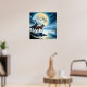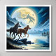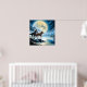 Poster rocha da noite escura do rio lua de pintar lobo