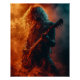 Uma renderização digital de um músico de rock atuando apaixonadamente no palco, com iluminação e energia dramáticas.