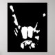 Estreitamente iluminada mão em saudação de rocha na escuridão. Gráfico preto e branco, em t-shirts, capuzes, cartas, presentes.