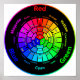 Esta roda colorida RGB (Vermelho, Verde, Azul) tem nomes, valores de ângulo de matiz (0-359), temperaturas (quente/frio) e pedidos (primário/secundário).