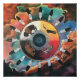 Baseado na Roda Nativa Americana de Medicina, esta pintura representa as Quatro Direções com Buffalo (norte), Urso (oeste), Coyote (sul) e Águia (leste). As penas da águia rodeiam a roda colocada no meio do cosmos. Os ramos de aves são centrais...e tecelagem de galhos rodeia os animais.