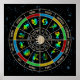 Uma roda bodiaca colorida mostrando todos os 12 sinais bodiques incluídos são os nomes, símbolos e imagens. decoração de excelentes para as pessoas que entram em horóscopos!