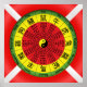 Roda com os sinais do zodíaco chinês e os anos a que dizem respeito, em cores vermelha, verde e amarela