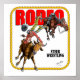 Rodeo Steer Wrestler em apuros com o pé pendurado no estribo.