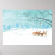 Veado de roe no inverno. Ilustração de livro. Um grupo de veados de roe pisa neve recentemente caída sob um velho carvalho. Paisagem de inverno pintada em cores que ilustram um dia frio de inverno na natureza. Paisagem florestal de neve do inverno Roe Deer.