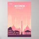 Adicione um pouco de talento à sua decoração com esta poster cor-de-rosa, com uma ilustração retrógrada do horizonte Roma, Itália, incluindo o Coliseu Italiano!