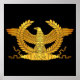 A Roman golden eagle on a background of deepest black, wreathed in victory and bearing thunderbolts. Vae Victis!