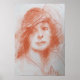 Retrato feminino romântico Desenho de carvão castanho - Florença Itália 1977