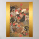 Póster Roosters Japonês Pintura com Fundo de Ouro