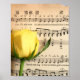 Música em folha e notas musicais com uma adorável rosa amarela em cima. Presente perfeito para o músico em sua vida.