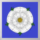 A rosa branca foi um dos vários dispositivos a serem exibidos em crachás e banners Yorkistas. Esta ilustração original de Richard H. Fay é baseada em vários rosas heráldicos de período medieval.