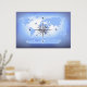 Uma ilustração gráfica vetorial (para impressão de alta qualidade) de um rosa de bússola num mapa mundial. Arte original: Direitos autorais Charmaine Paulson