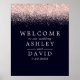 Poster de Boas-vindas ao Marinho de Confetti rosa Azul Chic. Linda e simples confete de ouro rosa de vidro de vintage contra um fundo azul marinho. Este design moderno personalizado pode ser facilmente personalizado com seus próprios detalhes.