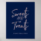 Este sinal de bar de sobremesa na moda apresenta um script de pincel de ouro rosa "Doces e Tratamentos" sobre um fundo azul marinho. Perfeito para uma festa de aniversário moderna, casamento ou outro evento. O convite e os suprimentos de festa estão disponíveis no meu compro BaraBomDesign.