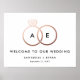 Bem-vindos aos seus convidados ao seu casamento com este símbolo personalizado que inclui um monograma moderno e anéis de casamento de rosa de ouro de folha de papel imbatível.