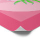 Rosa em tons de rosa. Duas imagens gráficas com sombreamento criado por vários graus de opacidade são usadas para criar esse poster. O fundo é um quadrado com um quarto de círculos em cada canto e um círculo de cheio no centro. Isso cria uma área central de "diamante" em tom médio, ovoides em tom mais leve, cantos arqueados são de sombra média. Por cima desse gráfico está uma imagem da rosa com caule verde e folhas. As pétalas estão em vários tons. A alteração da cor de fundo permitirá obter a cor do rosa desejada (o padrão é o rosa escuro) que forma uma borda ao redor do impressão.