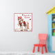 Bonito Unicórnio branco tem uma coroa vermelha, sela vermelha e rosas em sua fita mané e satin ao redor do pescoço. poster de excelente para o quarto das meninas. Personalize adicionando o nome do seu filho.