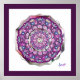 Desenho de uma janela de vidro manchado de uma velha Catedral Europeia: uma janela de rosa, com toques de uma grande variedade de cores, incluindo tons de rosa e vermelho cardeal, sobre um fundo vermelho cardeal. Inlay de rochas brancas (desenhada). Este motivo também está disponível em azul profundo nas minhas coleções "Blue rosace". (sem IA)