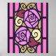 Design rosa de deco de arte em vidro retido, cor-de-rosa, azeitona clara, amarelo pálido, lilás e rosa poeirento, com púrpura poeirenta escura.