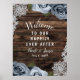 Poster Rosas Azuis Rústicos de Madeira Boas-vindas