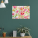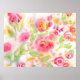 rosas de abstrato de impressão de poster, de cor rosa, amarela, verde e branca, a partir da pintura de aquarela original.