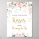 Adivinhem Quantos Beijos para o Sinal de Jogo da Mamãe a Ser Chá de fraldas - Este design apresenta uma ilustração de rosas cor-de-rosa pálidas e caules verdes folheados no estilo de aquarela. Esta placa é perfeita para adicionar diversão e entusiasmo ao seu Chá de fraldas.