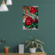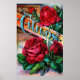 Um belo poster vintage com uma imagem de cartão comercial antiga com belas rosas vermelhas.